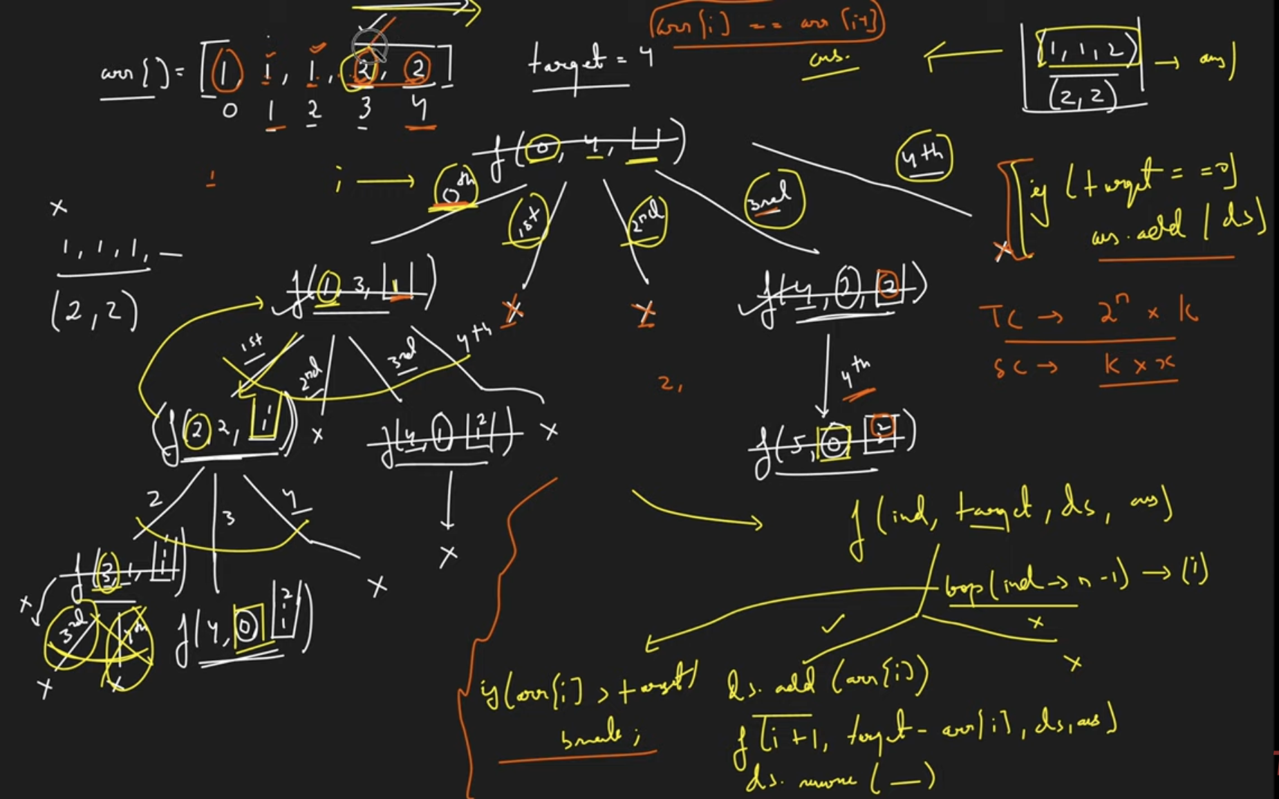 Input: candidates = [2,5,2,1,2], target = 5 Output: [ [1,2,2], [5] ]“