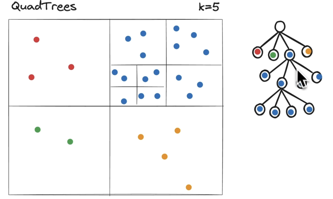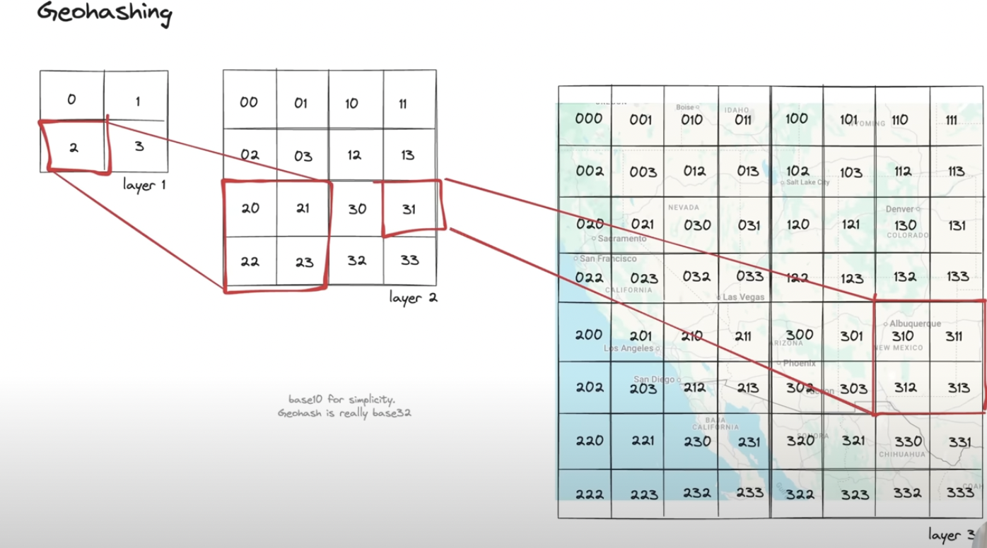 Difference from Geo Hashing is its not 1 dimensional number set. its a tree structure and expend child only when there is more density area present for parent node.