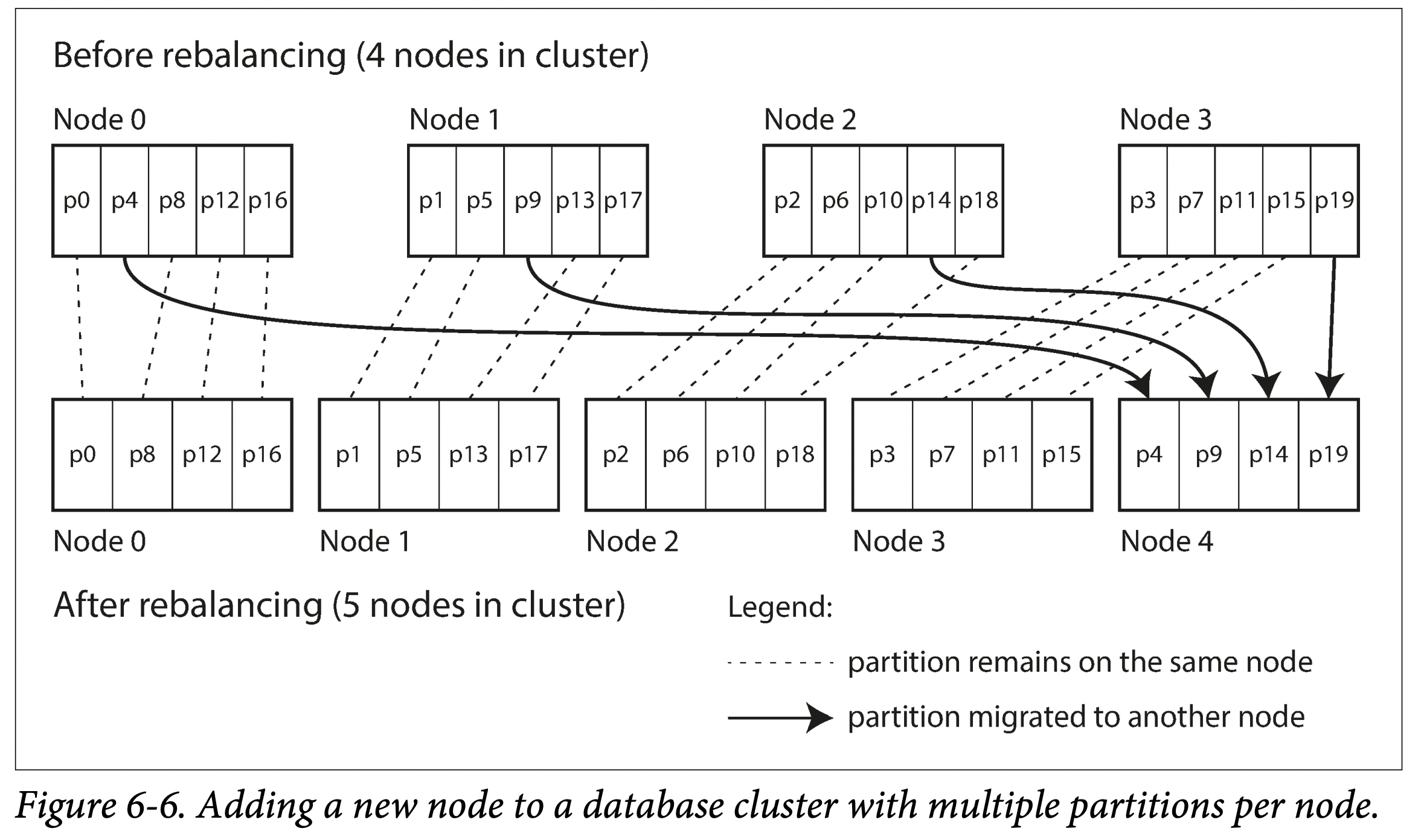 Now, if a node is added to the cluster, the new node can steal a few partitions from every existing node until partitions are fairly distributed once again.If a node is removed from the cluster, the same happens in reverse.